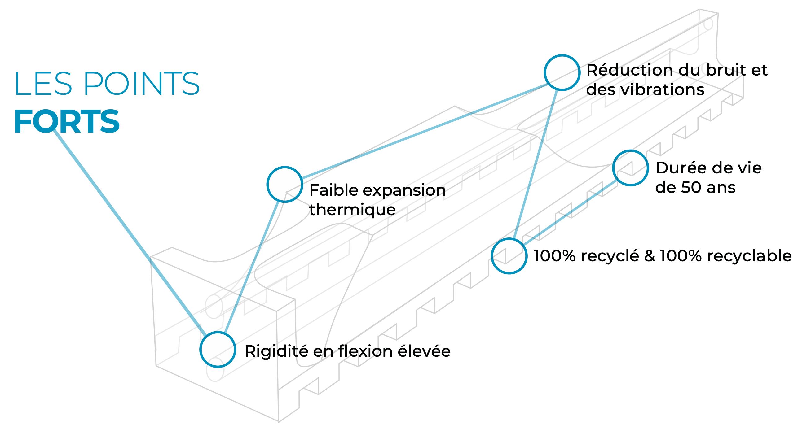 S’intègre parfaitement à l’infrastructure ferroviaire existante tout en ne nécessitant aucun entretien.